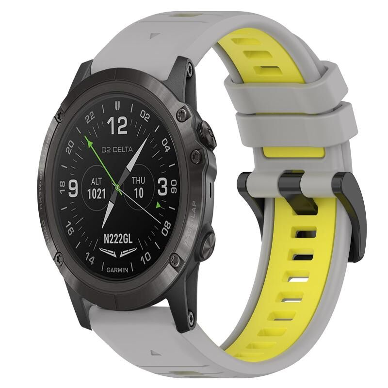 Για Garmin D2 Delta PX Sports Δίχρωμο 26mm Ελαστικό Ρολόι Σιλικόνης (Γκρι+Κίτρινο)