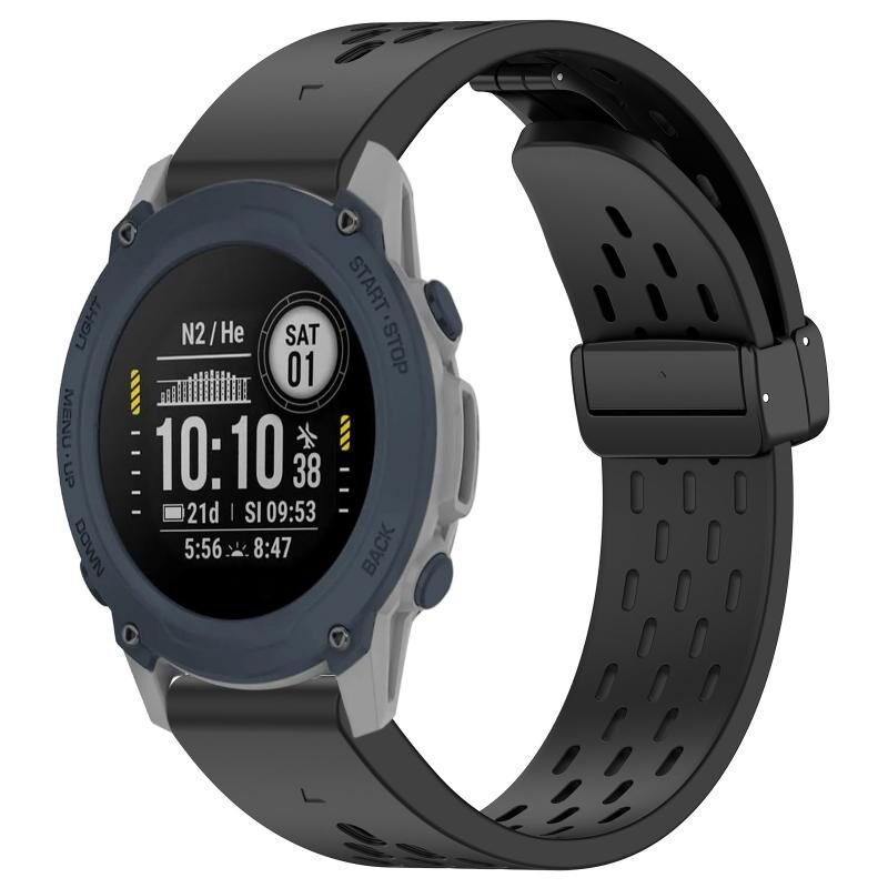 Για Garmin Descent G1 22mm οπές μαγνητική πτυσσόμενη πόρπη σιλικόνης ρολόι μπάντα (μαύρο)