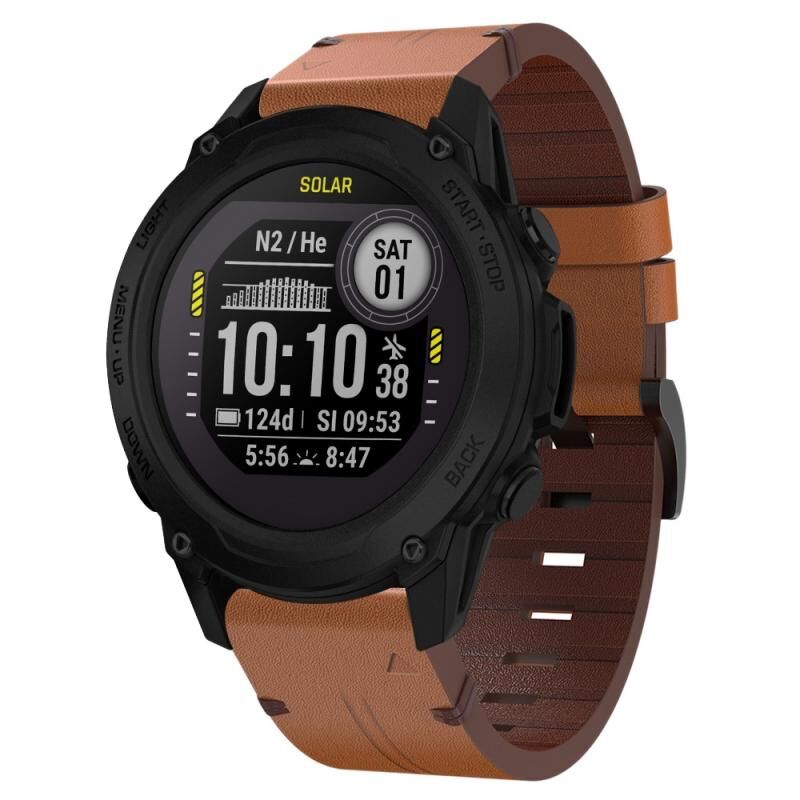Για Garmin Descent G1 22mm δερμάτινη ζώνη ρολογιού με ατσάλινη πόρπη (καφέ)