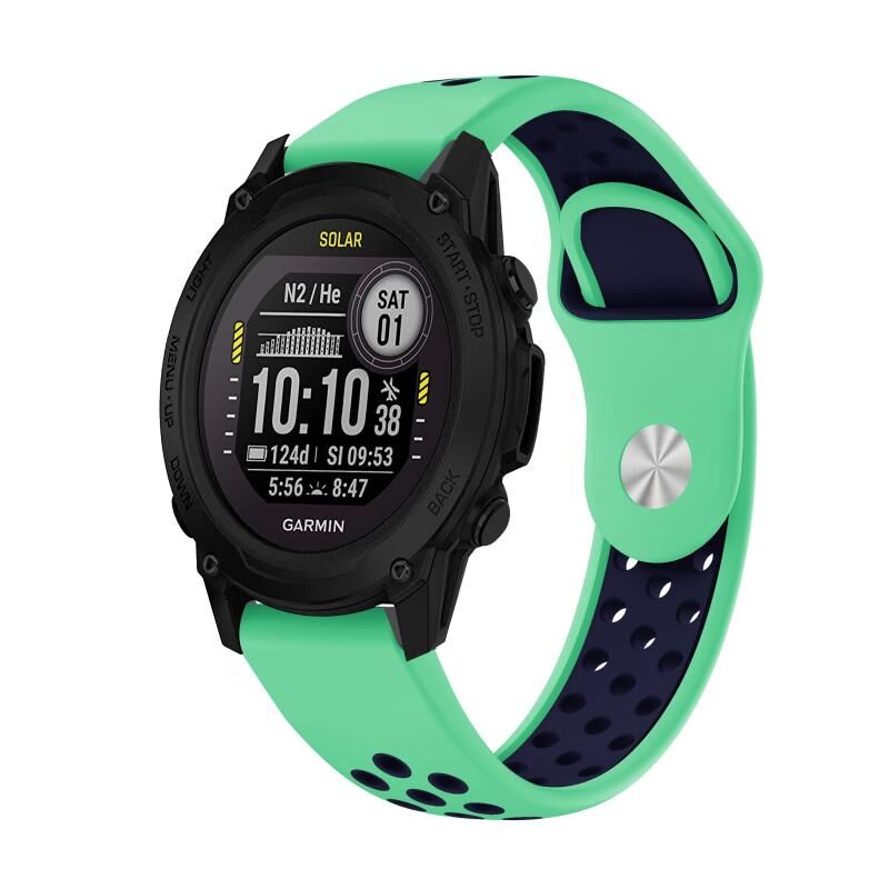 Για Garmin Descent G1 22mm Αθλητικό αναπνεύσιμο λουράκι σιλικόνης για ρολόι (Πράσινο μέντα + Μπλε μεσάνυχτα)