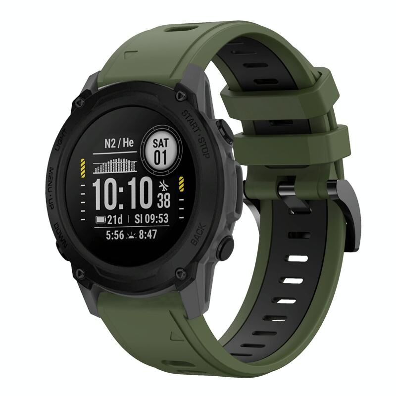 Για το Garmin Descent G1 22 χιλιοστά δύο χρωμάτων αθλητική ζώνη σιλικόνης ρολόι (πράσινο στρατού + μαύρο)