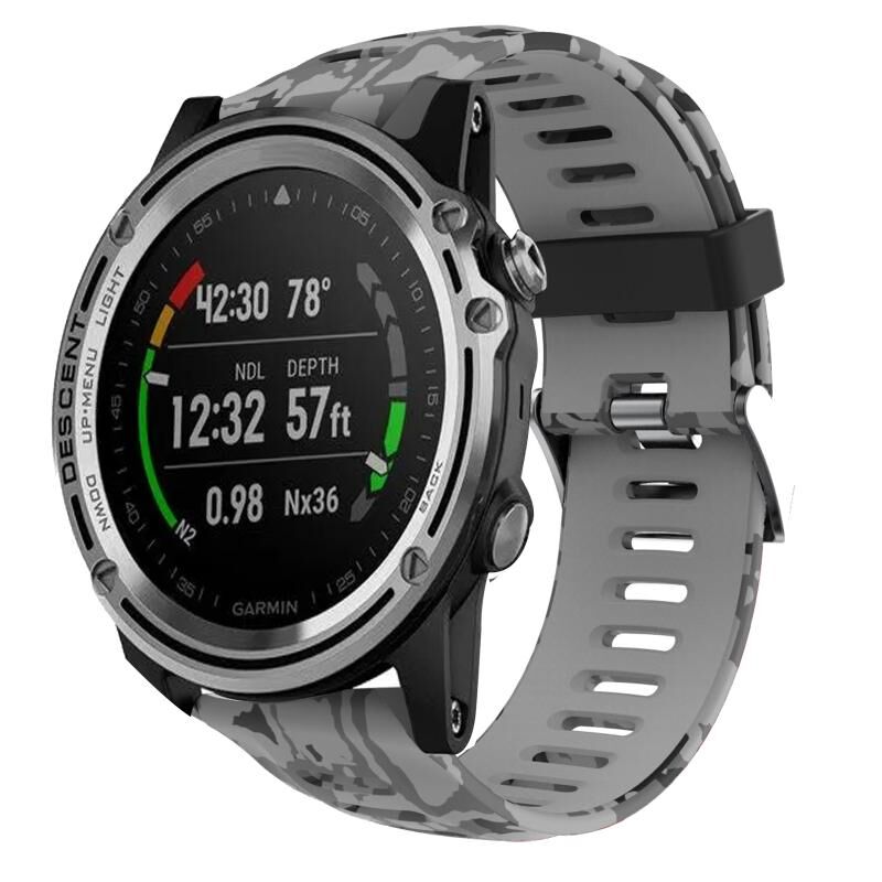 Για το Garmin Descent MK 1 26mm Camouflage Printed Silicone Watch Band (Γκρι+Army Camouflage)