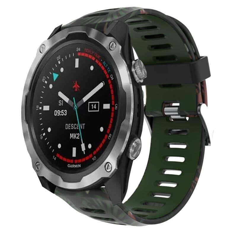 Για το Garmin Descent MK 2 26mm Camouflage Printed Silicone Watch Band (Army Green+Bamboo Camouflage)