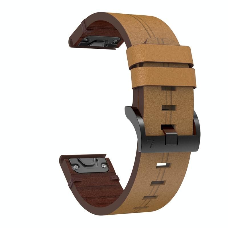 For Garmin Descent MK 2 26mm Leather Steel Buckle Watch Band (Light Brown)