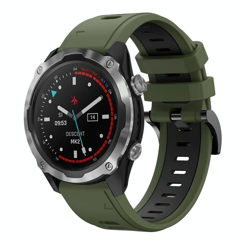 Για το Garmin Descent MK 2 26 χιλιοστά δύο χρωμάτων αθλητική ζώνη σιλικόνης ρολόι (πράσινο στρατού + μαύρο)