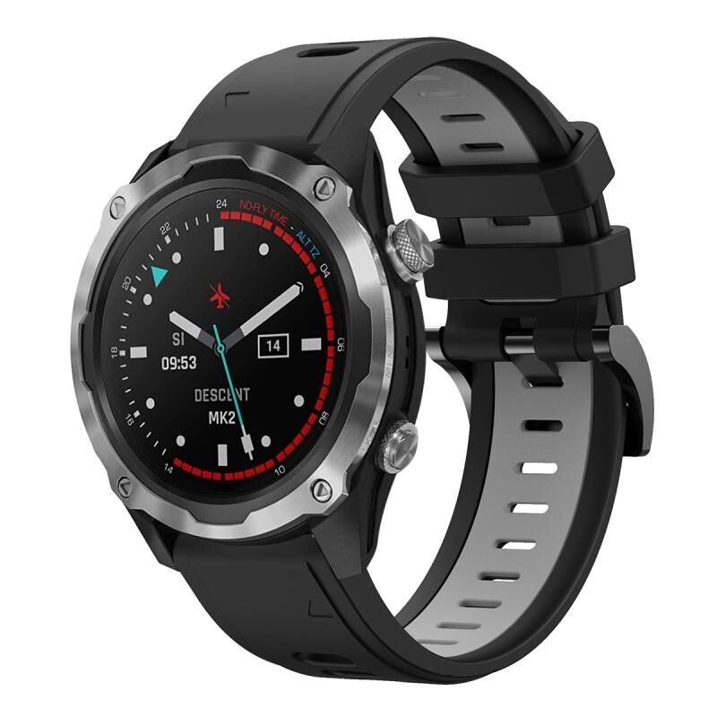 Για το Garmin Descent MK 2 26 χιλιοστά δύο χρωμάτων Αθλητικό λουράκι σιλικόνης (μαύρο+γκρι)