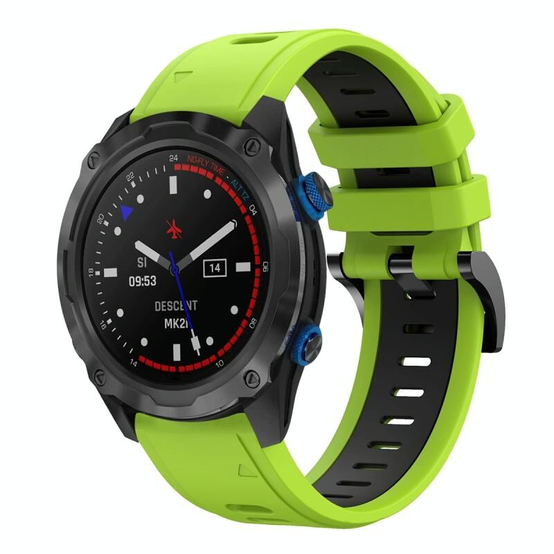 Για το Garmin Descent MK 2i 26 χιλιοστά δύο χρωμάτων αθλητική ζώνη σιλικόνης ρολόι (πράσινο χρώμα + μαύρο)