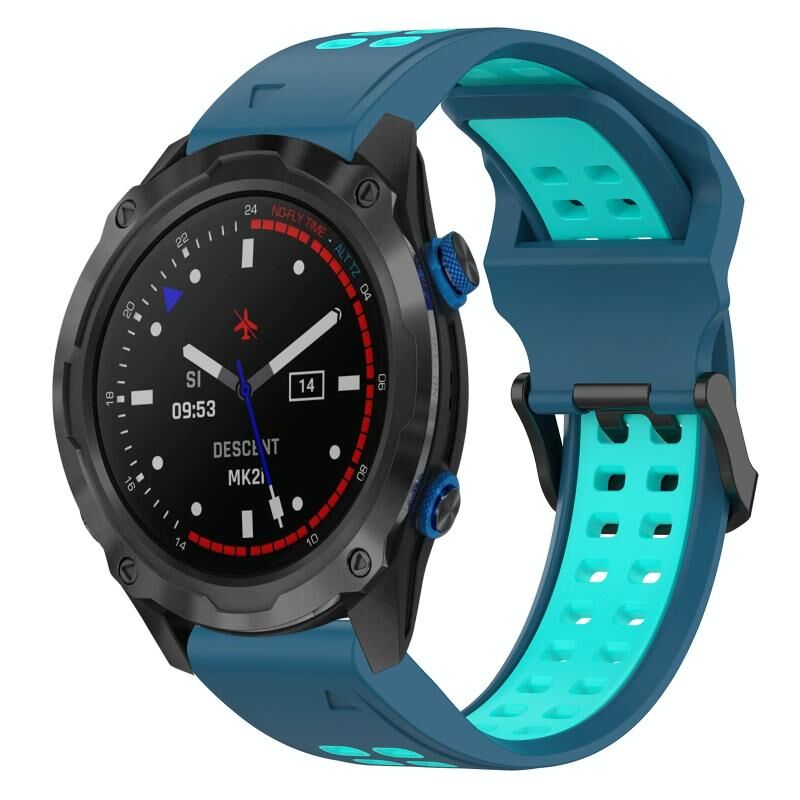 Για Garmin Descent MK 2i Δίχρωμο Αντίστροφο Κούμπωμα 26mm Σιλικόνης Ρολόι Μπρασελέ (Μπλε+Γαλαζοπράσινο)