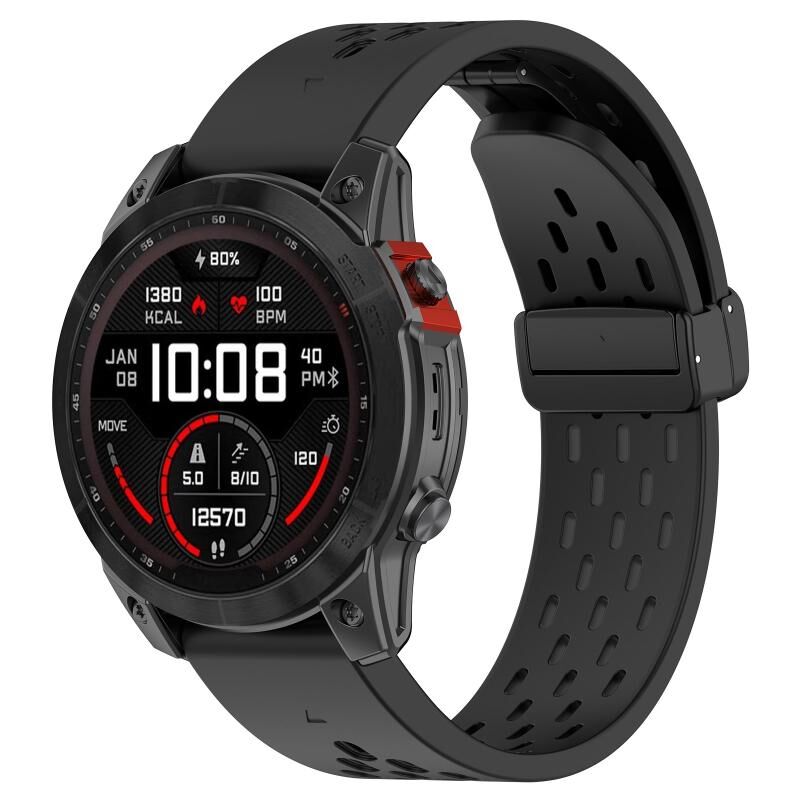 Για Garmin Descent MK1 / MK2 / MK2i Γρήγορη απελευθέρωση οπές μαγνητική πόρπη σιλικόνης λουράκι ρολογιού (Μαύρο)