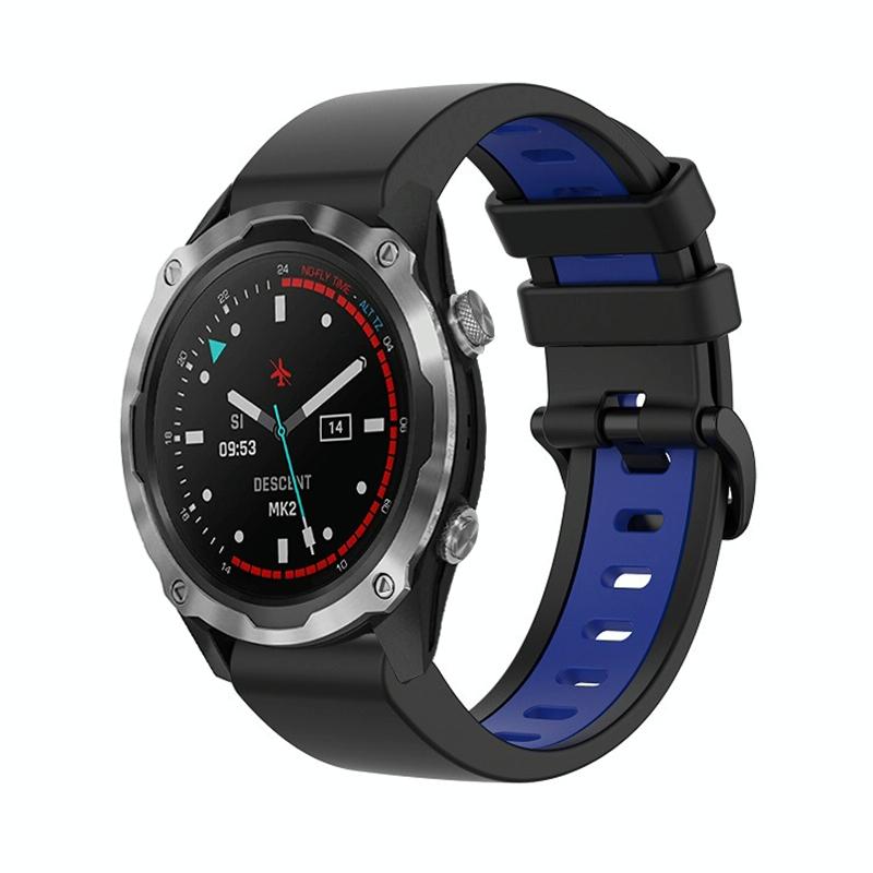 For Garmin Descent MK2 26mm Silicone Sports Two-Color Watch Band(Black+Blue)