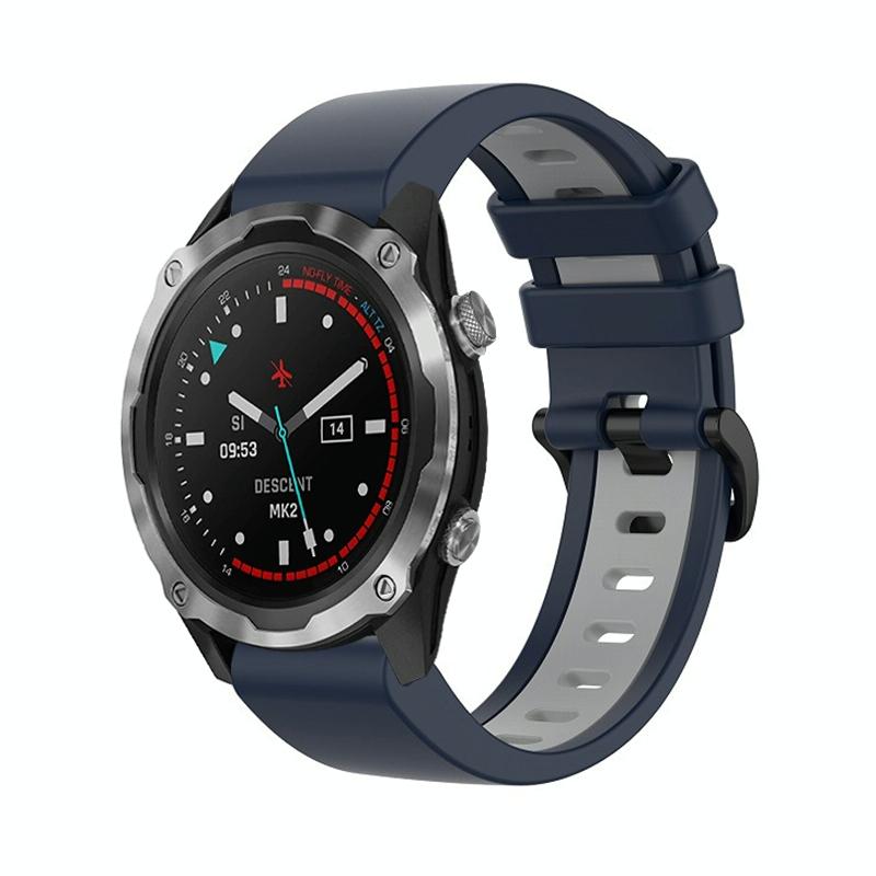 For Garmin Descent MK2 26mm Silicone Sports Two-Color Watch Band(Dark Blue+Grey)