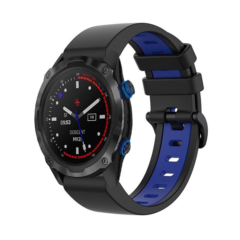 For Garmin Descent MK2i 26mm Silicone Sports Two-Color Watch Band(Black+Blue)