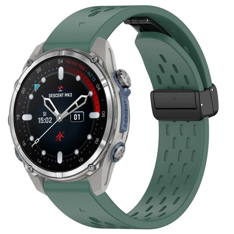 Για Garmin Descent MK3 43mm 20mm οπές μαγνητική πτυσσόμενη πόρπη σιλικόνης ρολόι μπάντα (σκούρο πράσινο)