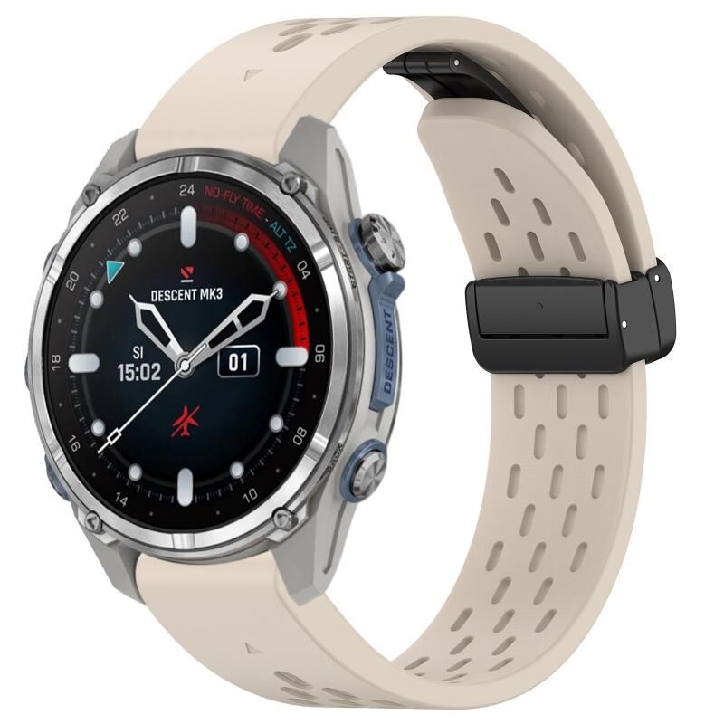 Για το Garmin Descent MK3 43mm 20mm οπές μαγνητική πτυσσόμενη πόρπη σιλικόνης ζώνη ρολογιού (Starlight)