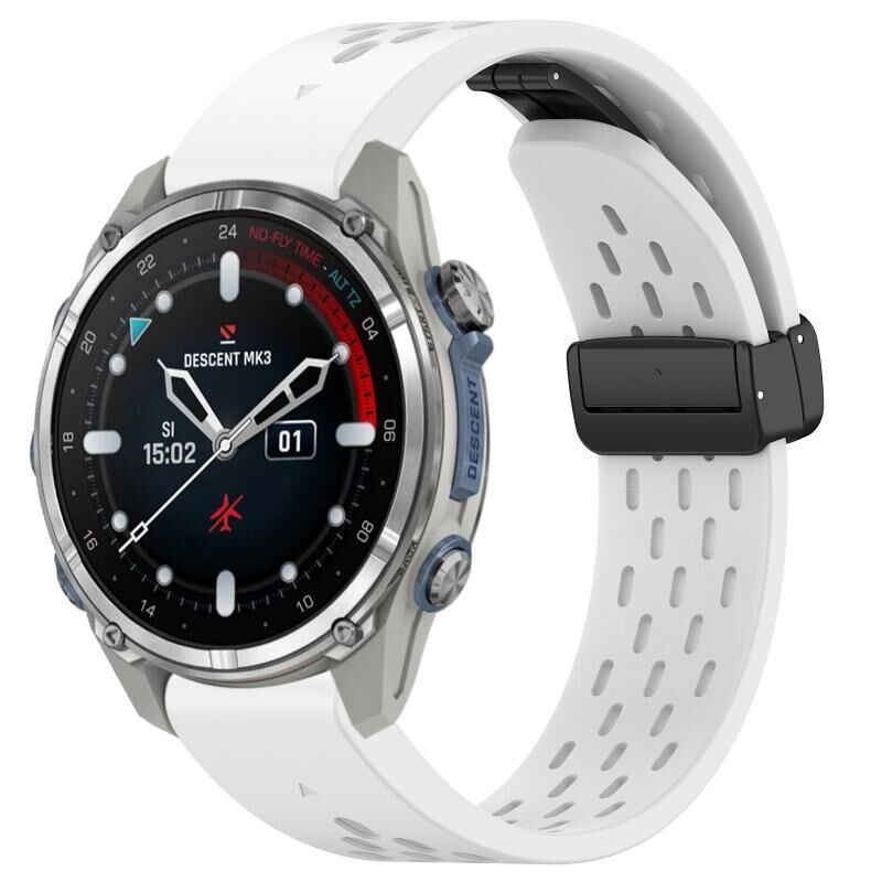 Για Garmin Descent MK3 43mm 20mm οπές μαγνητική πτυσσόμενη πόρπη σιλικόνης ρολόι μπάντα (λευκό)