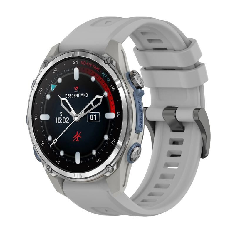 Για το Garmin Descent Mk3 43 χιλιοστά καθαρό χρώμα χάλυβα πόρπη 20 χιλιοστά σιλικόνης ρολόι μπάντα (γκρι)