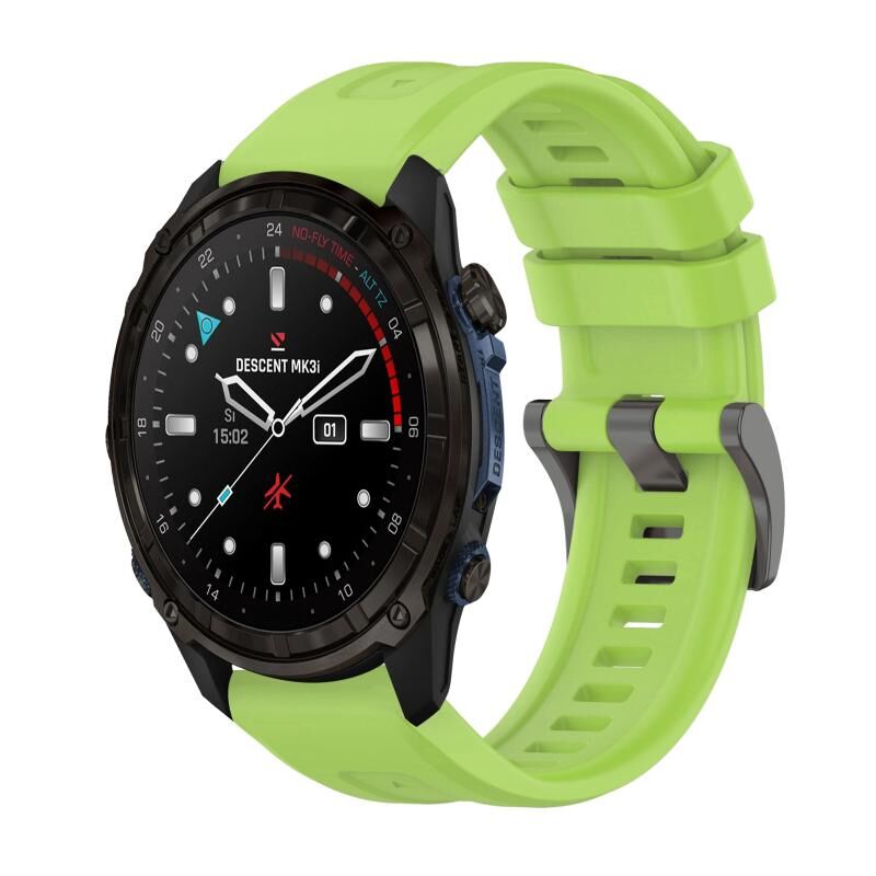 Για το Garmin Descent Mk3i 43 χιλιοστά καθαρό χρώμα χάλυβα πόρπη 20 χιλιοστά σιλικόνης ρολόι μπάντα (Lime)