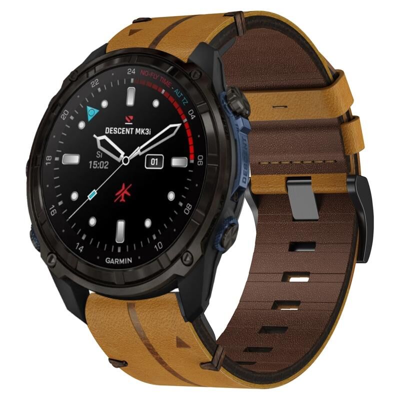 For Garmin Descent Mk3i 51mm Leather Textured 26mm Watch Band(Brown)