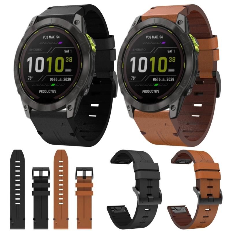 Για το Garmin Enduro 2 26mm δερμάτινη ατσάλινη ζώνη ρολογιού με αγκράφα (Μαύρο)