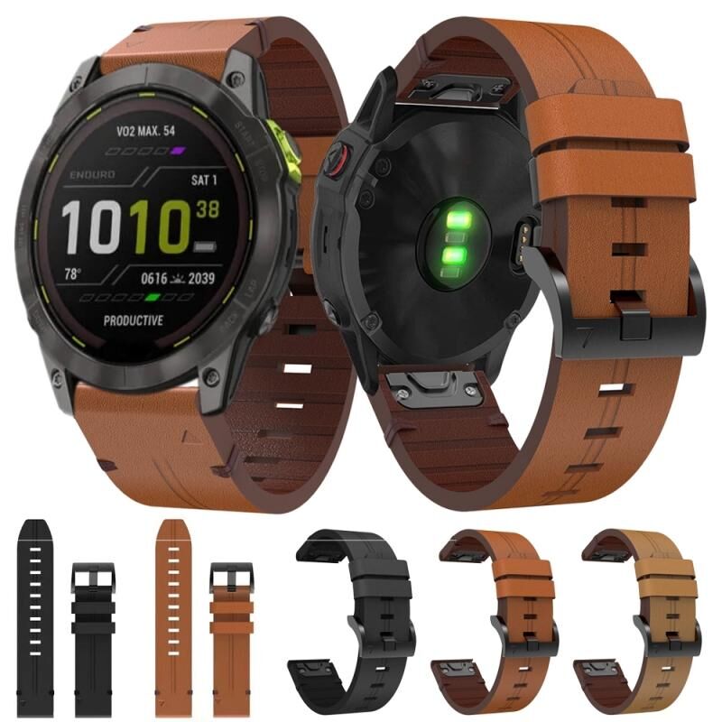 Για Garmin Enduro 2 26mm Δερμάτινη ζώνη ρολογιού με ατσάλινη πόρπη (ανοιχτό καφέ)