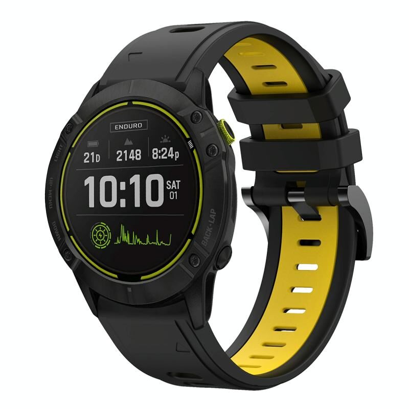 Για το Garmin Enduro 26 χιλιοστά δύο χρωμάτων αθλητική ζώνη σιλικόνης ρολόι (μαύρο + κίτρινο)