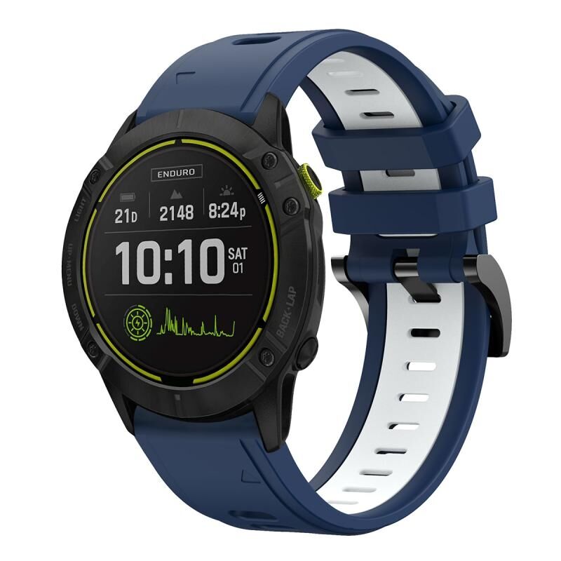 Για το Garmin Enduro 26 χιλιοστά δύο χρωμάτων αθλητική ζώνη σιλικόνης ρολόι (Midnight Blue + Λευκό)