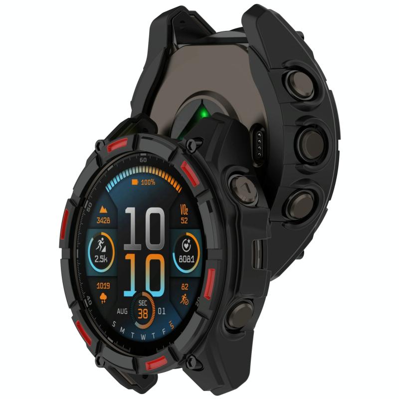 For Garmin Enduro 3 Armour Hollow TPU Half Coverage Watch Protective Case(Black Red)