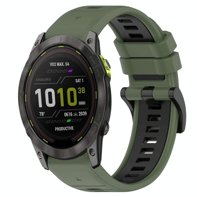 Για Garmin Enduro 3 Αθλητισμός δύο χρωμάτων 26 χιλιοστά σιλικόνης ρολόι μπάντα ρολογιού (Olive Green + Μαύρο)
