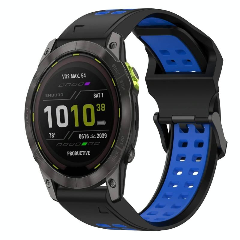 Για το Garmin Enduro 3 Δύο χρώματα Αντίστροφη πόρπη 26mm σιλικόνης ζώνη ρολογιού (μαύρο+μπλε)