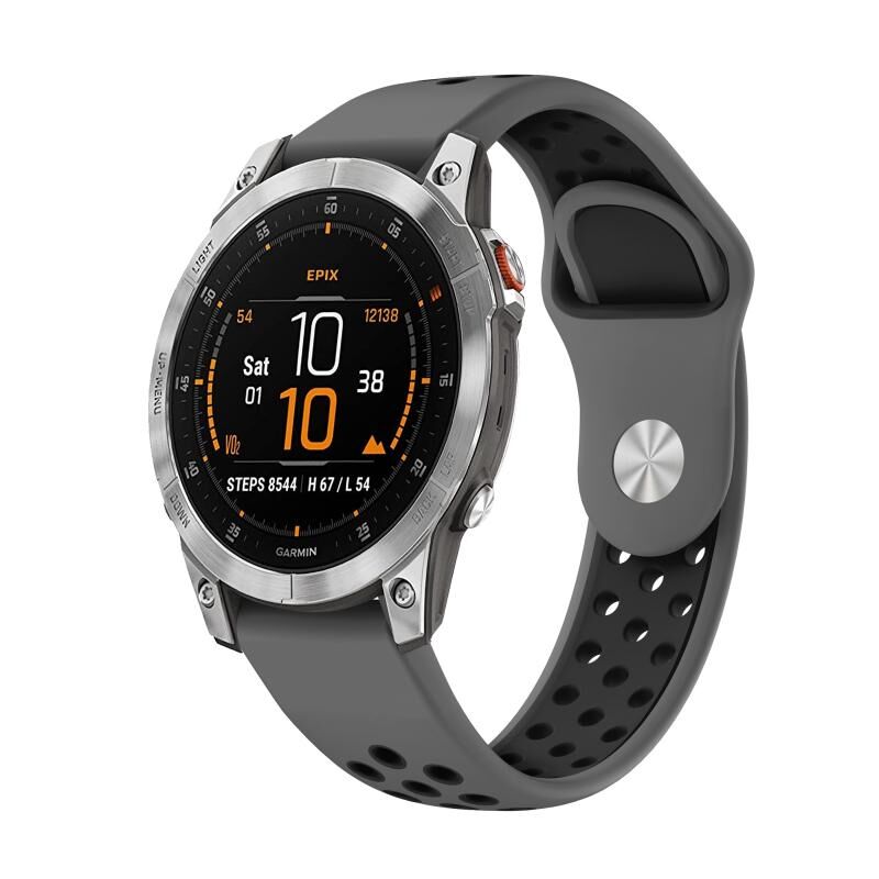 Για Garmin EPIX Gen 2 22mm Αθλητικό αναπνεύσιμο λουράκι σιλικόνης (γκρι+μαύρο)