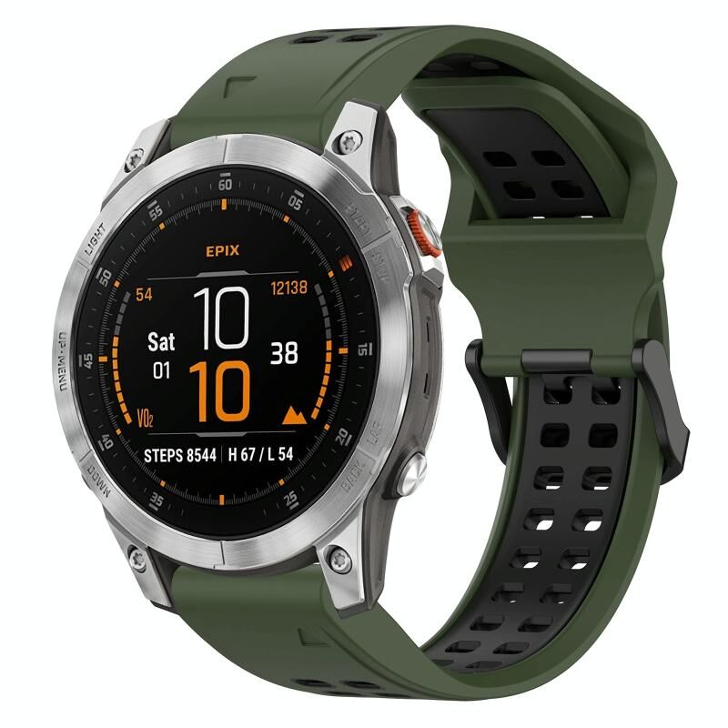 Για Garmin EPIX Gen 2 Δίχρωμο Αντίστροφο Κούμπωμα 22mm Σιλικόνης Ρολόι Μπρασελέ (Στρατιωτικό Πράσινο+Μαύρο)