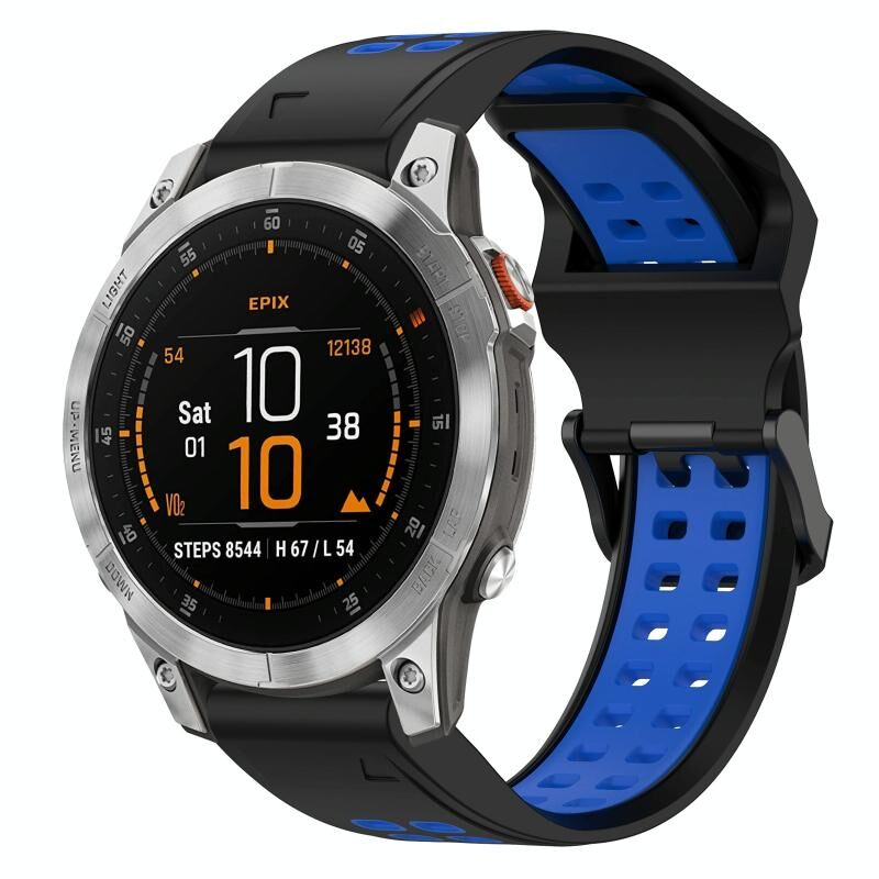 Για Garmin EPIX Gen 2 Δίχρωμο Αντίστροφο Κούμπωμα 22mm Σιλικόνης Ρολόι Μπρασελέ (Μαύρο+Μπλε)