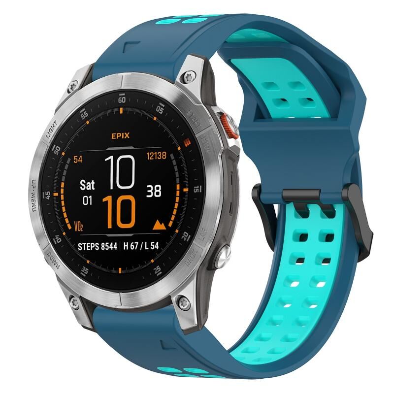 Για Garmin EPIX Gen 2 Δίχρωμο Αντίστροφο Κούμπωμα 22mm Σιλικόνης Ρολόι Μπρασελέ (Μπλε+Πετρόλ)
