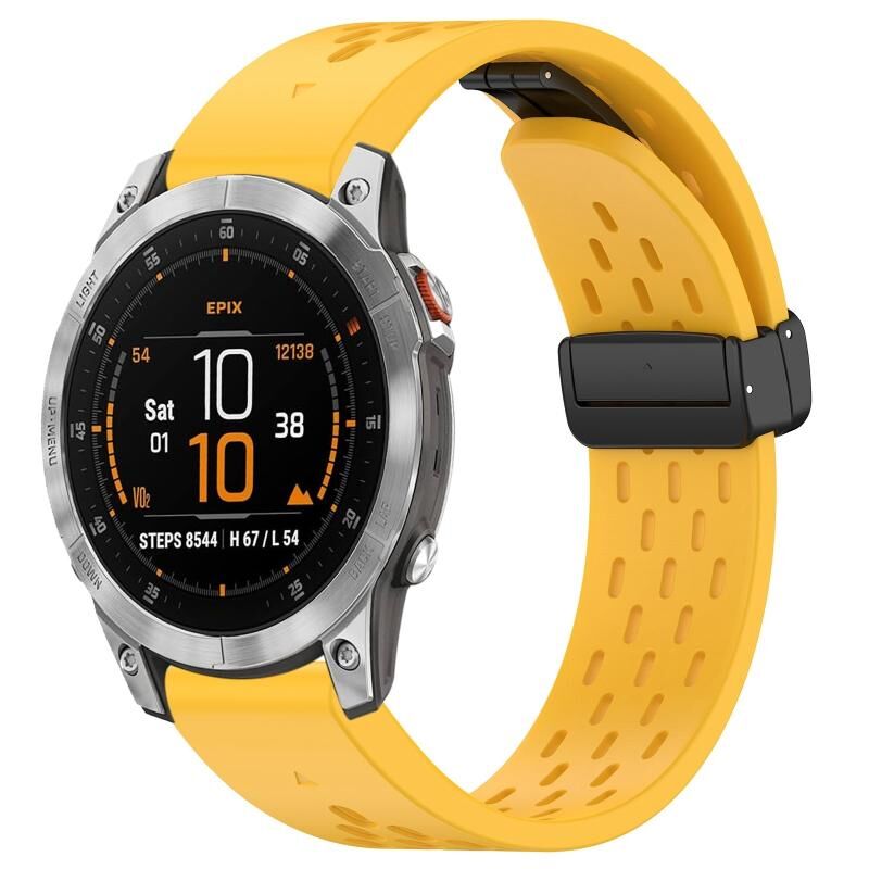 Για Garmin Epix Gen2 / Epix Pro Gen2 47mm οπές μαγνητική πτυσσόμενη πόρπη σιλικόνης ρολόι μπάντα (κίτρινο)