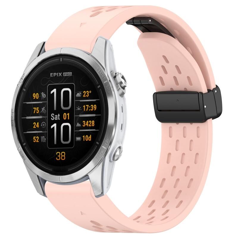 Για Garmin Epix Pro 42mm 20mm οπές μαγνητική πτυσσόμενη πόρπη σιλικόνης ρολόι μπάντα (ροζ)
