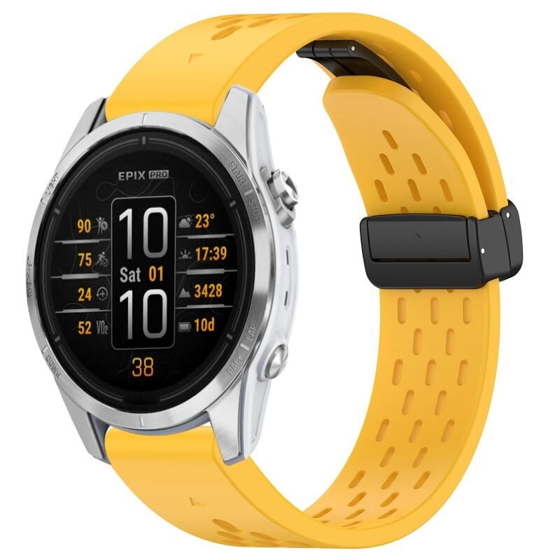 Για Garmin Epix Pro 42mm 20mm οπές μαγνητική πτυσσόμενη πόρπη σιλικόνης ρολόι μπάντα ρολογιού (κίτρινο)