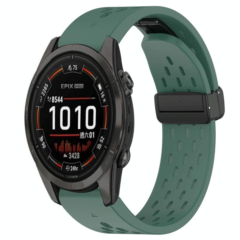 Για Garmin Epix Pro 42mm Λουράκι Σιλικόνης με Αγκράφα Διπλώματος 20mm (Σκούρο Πράσινο)