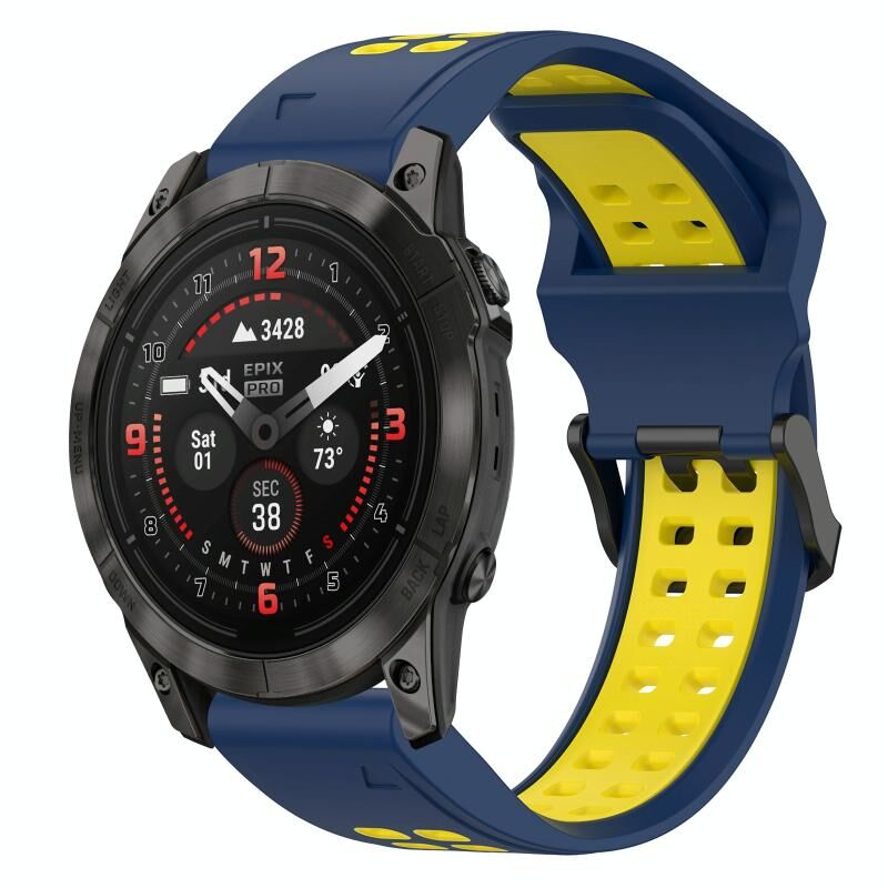 Για Garmin Epix Pro 42mm Δίχρωμο Αντίστροφο Κούμπωμα 20mm Σιλικόνης Ρολόι Μπρασελέ (Μπλε+Κίτρινο)