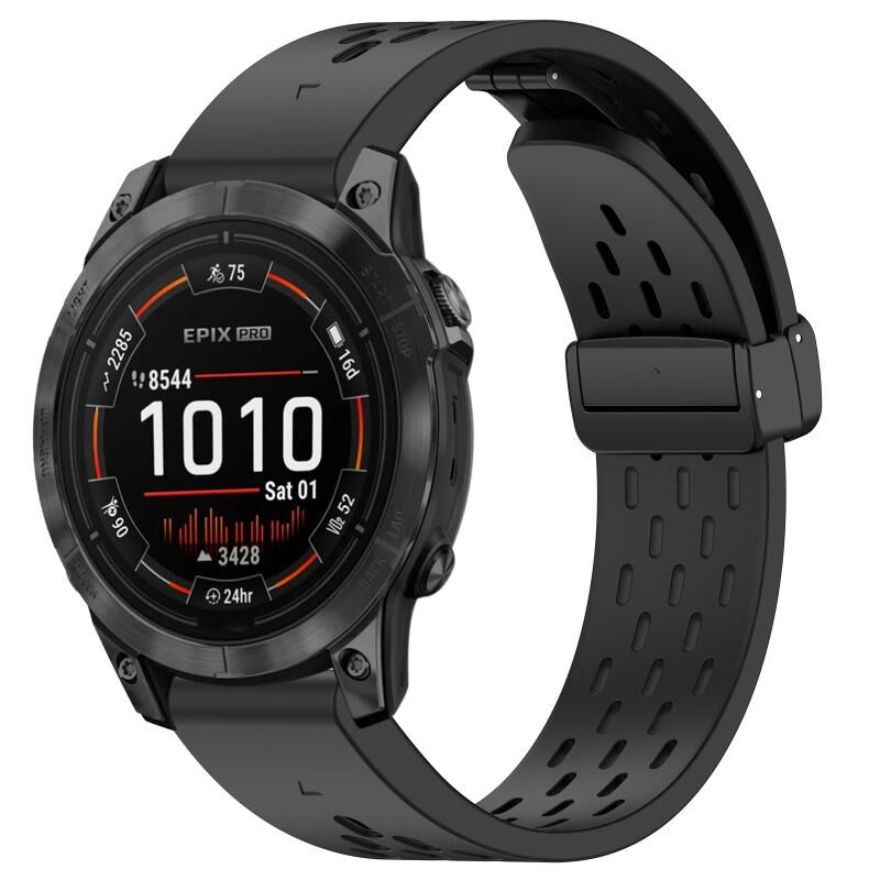 Για Garmin Epix Pro 47mm 22mm οπές μαγνητική πτυσσόμενη πόρπη σιλικόνης ρολόι μπάντα (μαύρο)