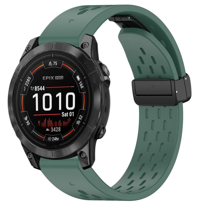 Για Garmin Epix Pro 47mm 22mm οπές μαγνητική πτυσσόμενη πόρπη σιλικόνης ρολόι μπάντα (σκούρο πράσινο)
