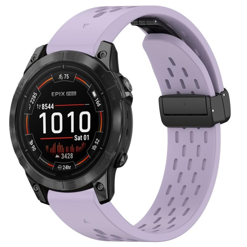 Για το Garmin Epix Pro 47mm 22mm οπές μαγνητική πτυσσόμενη πόρπη σιλικόνης ρολόι μπάντα (μωβ)