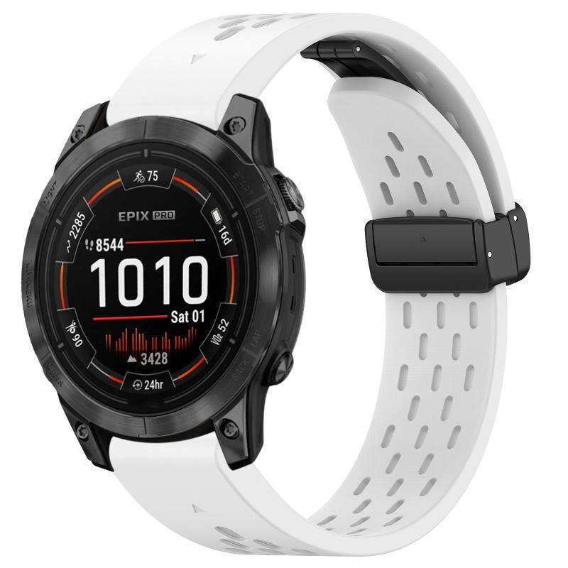 Για Garmin Epix Pro 47mm 22mm οπές μαγνητική πτυσσόμενη πόρπη σιλικόνης ρολόι μπάντα (λευκό)
