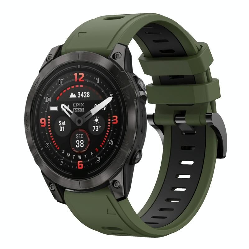 Για Garmin Epix Pro 47mm Αθλητισμός Δύο χρώμα 22mm σιλικόνης ρολόι μπάντα ρολογιών (Στρατού πράσινο + μαύρο)