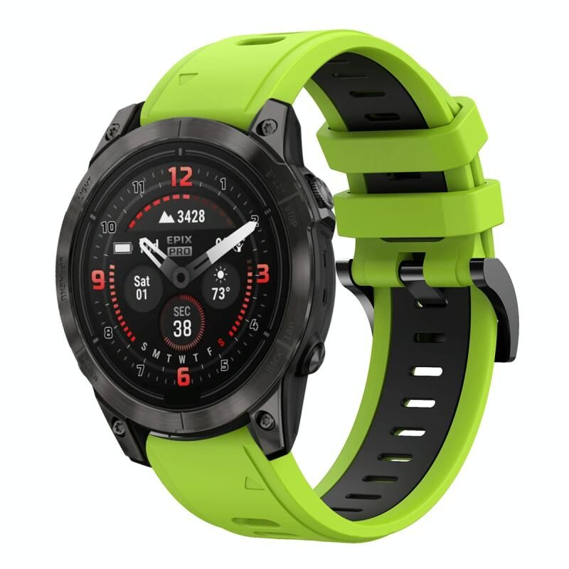 Για το Garmin Epix Pro 47mm Αθλητισμός Δύο χρώματα 22 χιλιοστά σιλικόνης ρολόι μπάντα (Lime + Μαύρο)