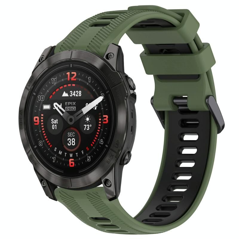 Για το Garmin EPIX Pro 47mm Αθλητικό ρολόι σιλικόνης δύο χρωμάτων (πράσινο στρατού + μαύρο)