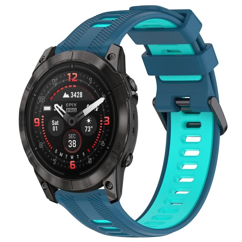 Για το Garmin EPIX Pro 47mm Αθλητική ζώνη ρολογιού σιλικόνης δύο χρωμάτων (μπλε + γαλαζοπράσινο)