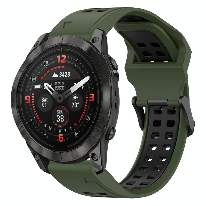 Για Garmin Epix Pro 47mm Δίχρωμο Αντίστροφο Κούμπωμα 22mm Ζώνη Ρολογιού Σιλικόνης (Χακί+Μαύρο)