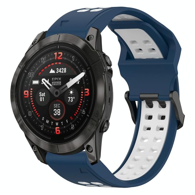 Για Garmin Epix Pro 47mm Δίχρωμο Αντίστροφο Κούμπωμα 22mm Ζώνη Ρολογιού Σιλικόνης (Μπλε+Λευκό)