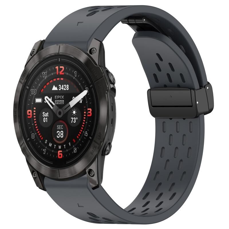 Για Garmin Epix Pro 51mm οπές μαγνητική πτυσσόμενη πόρπη σιλικόνης ρολόι μπάντα (σκούρο γκρι)
