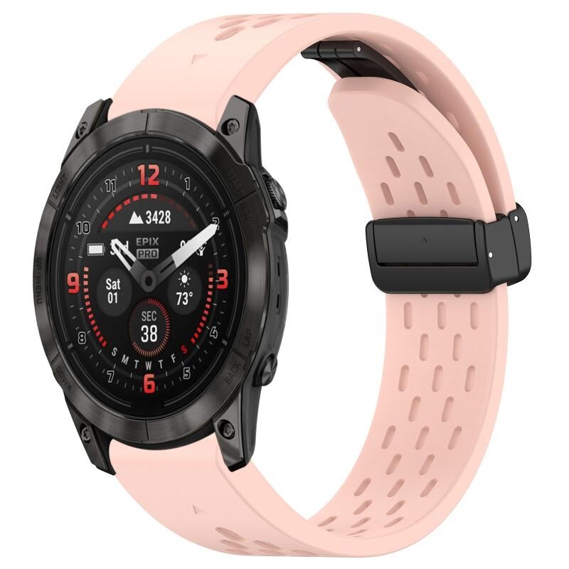 Για Garmin Epix Pro 51mm οπές μαγνητική πτυσσόμενη πόρπη σιλικόνης ρολόι μπάντα ρολογιού (ροζ)